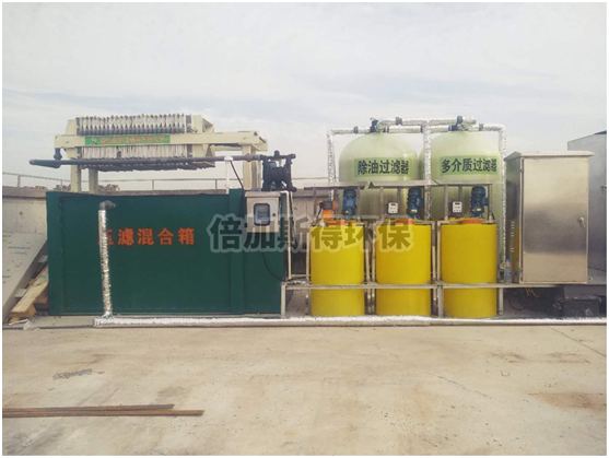 我司根据水环式真空泵循环水的特点,设计了针对性强的水环真空泵循环水回用设备,设备主要由冷却循环水箱、一体式中水回用设备、过滤器、压滤混合箱构成,冷却循环水箱设置有隔油区、换热器,换热器采用污水处理专用板式换热器,不易堵塞,换热效果好,一体式中水回用设备设置有物化反应装置、臭氧发生器,有效去除COD、金属离子、杀菌消毒,过滤器有效去除残余油脂、悬浮物,出水达到水环真空泵进水标准,设备产生的污泥排入混合压滤箱,由压滤机进行干化处理。