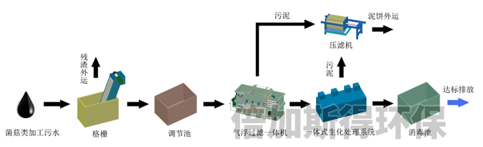 菌菇类加工污水为高浓度生产废水,水质水量波动性较大,污水主要含有悬浮物、动植物油、有机污染物以及盐分等,故需降低含盐量后方能进行生化处理。