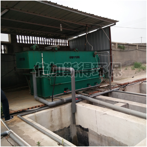 来自车间和生活区的污水流至格栅渠,经隔油沉淀池去除废水中的油脂,漂浮物和部分可沉物。进入污水调节池经泵提升至气浮机,气浮机前设置捞毛机,污水经气浮降解大部分SS和油类物质后。进入生化单元,在微生物的新陈代谢作用下,污水中污染物质COD、NH3-N、SS得以降解去除。深度处理采用曝气生物滤池,使污染物分解彻底,出水经消毒杀菌后达标排放或用于冲厕、绿化等。
