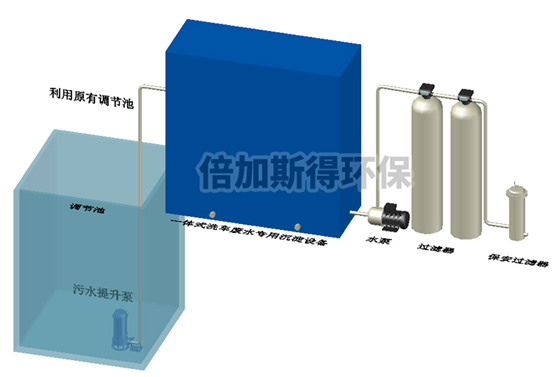 倍加斯得生产的洗车废水回用设备处理效果好、自动化程度高,占地面积小,采用药剂均为食品级,安全无毒害,循环用水处采用中水、自来水双接入,保证设备检修时的用水供应。洗车废水主要分为两类,一类是含油量少,含泥砂、洗涤剂较多的洗车废水,一般来说,小型车辆的洗车废水、单纯洗车行的洗车废水、采用人工高压水冲洗洗车废水具有这样的特点;另一类是含油量、泥砂、洗涤剂类物质均较高的洗车废水,运输类大型车辆的洗车废水、修车行废水、修车洗车相结合的洗车废水、采用机械洗车的洗车废水通常具有这样的特点,这类废水的处理工艺较为复杂。